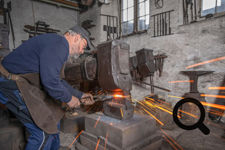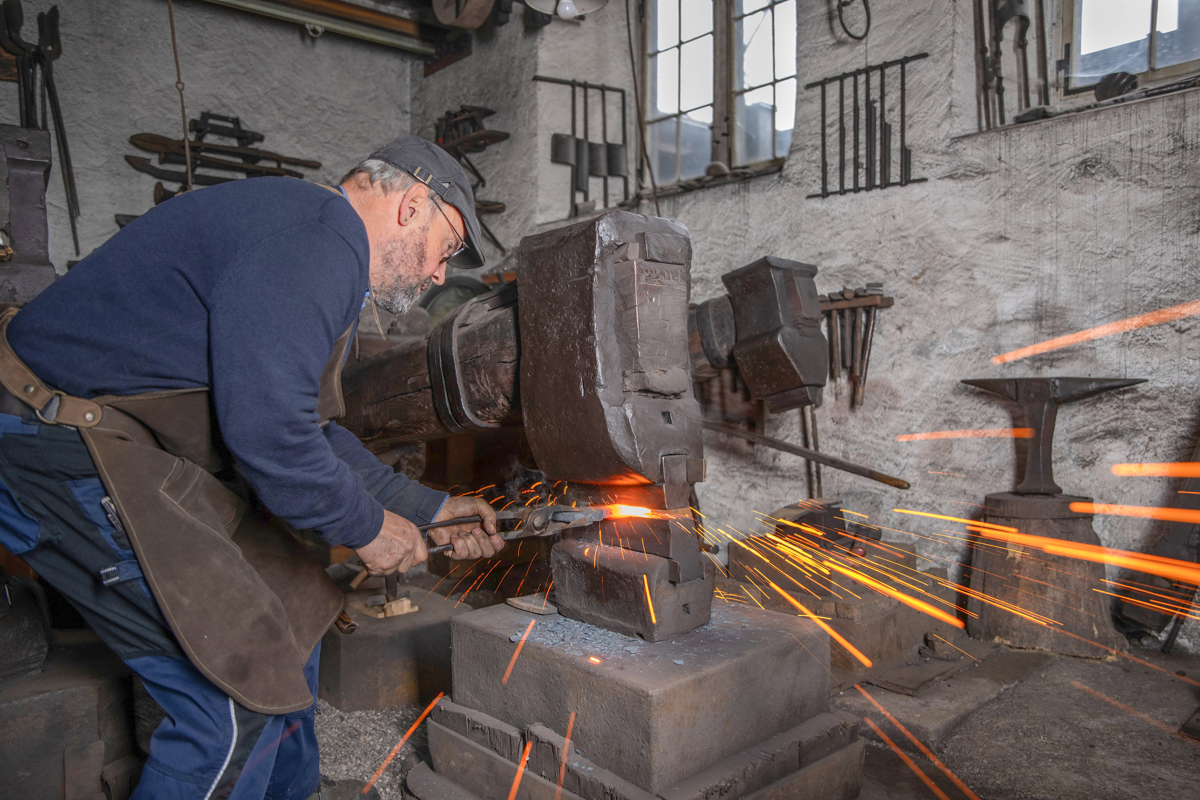 Rundtour mit praktischer Demonstration von Wasserräder, Transmission und Hammerwerk